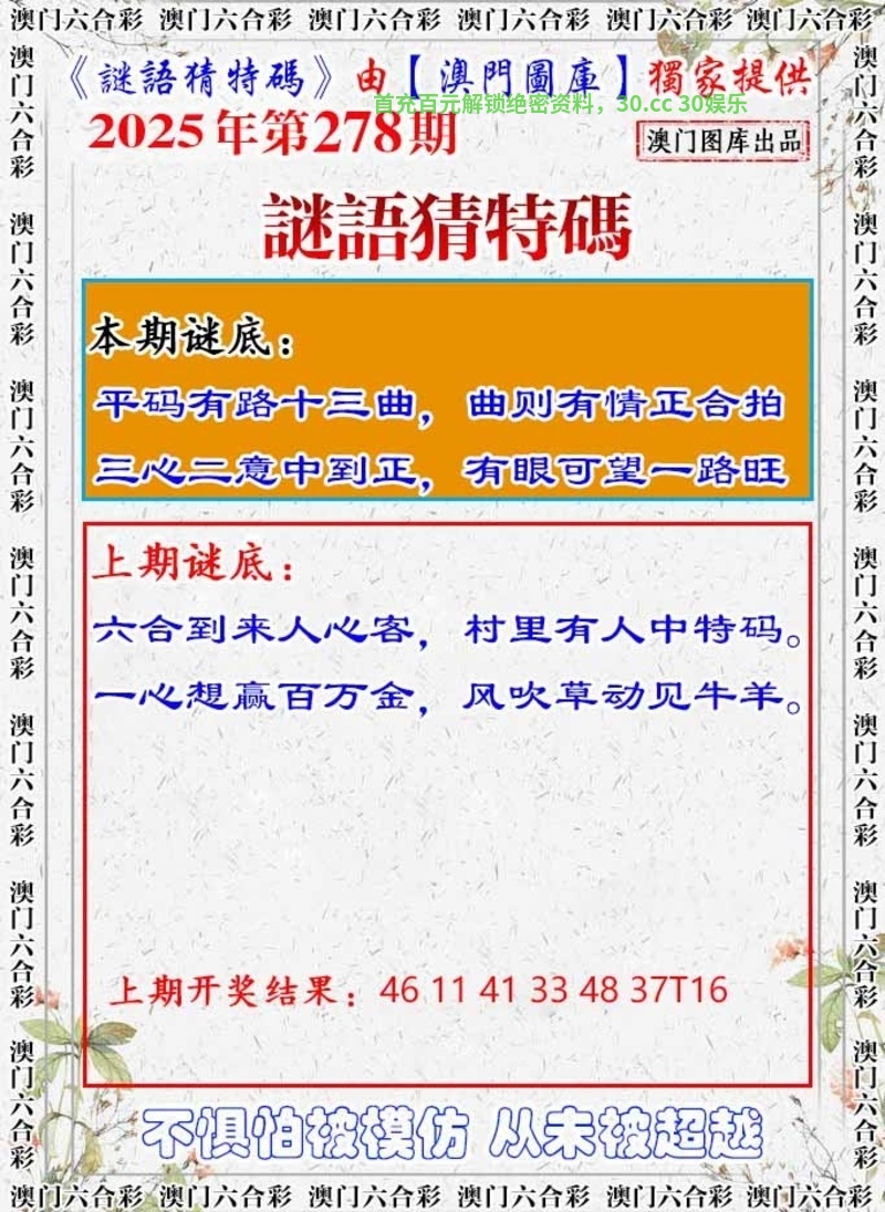 282期:两波中特【红波+绿波】开:牛41错 |