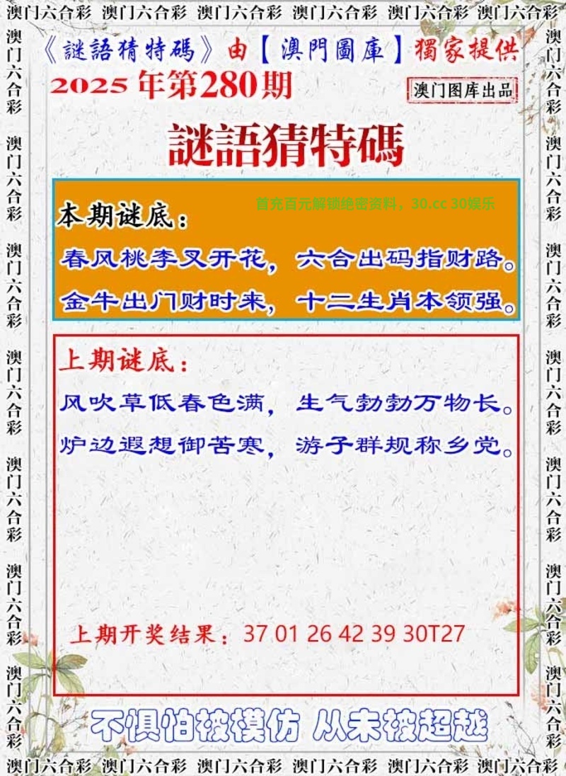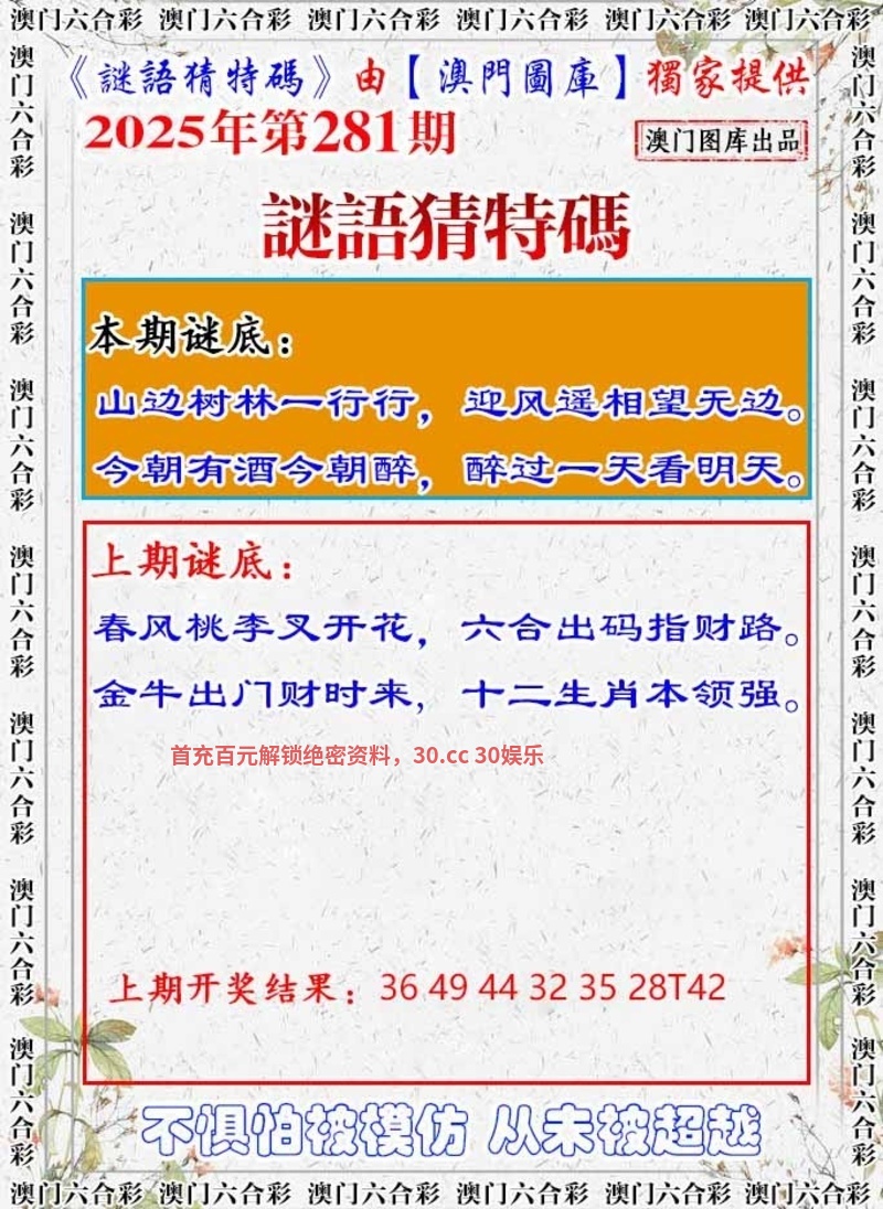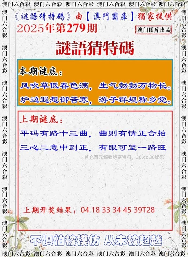 281期:三季中特💦【冬秋春】开:羊47错 |